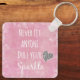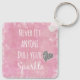 Pink Never let anyone dull your sparkle personalized Quote gifts. Pretty pink grunge distressed background with white font and silver faux glitter accent. Inspirational and motivational quote message. Some items include white bokeh sparkle edges. Inspirational gifts from Quote Life Boutique by Vikkelynn Designs & Co.