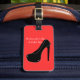 This fun design features a black stiletto high heel on a red background. The text reads, "I never met a shoe I didn't like". The text can easily be changed or removed. Easily customize the background color by clicking Customize It, Edit and Background. Just fill in the boxes to personalize this luggage tag with your name and contact information.