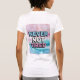 The material is a great quality that is hard to find with most tee shirts. Fabric was not see-through or thin at all, but was also very soft and comfortable. The shirt description states that it runs a little small, so I sized up one size for a perfect fit! I would definitely buy this type of tee shirt again because I love the fit and high quality fabric that I cannot find anywhere else. The printing was perfect and just as pictured. Loved the cute quote and really enjoy the tee in both the quality and design. I love quirky typography designs and funny quotes and I am extremely pleased with the overall quality and value I get at Zazzle!