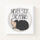 Cute postcard with cartoon flat hand drawn hedgehog and inspirational and motivational quote Never Stop Dreaming in a circle light blue frame on a white background. | Bigstock® - All Rights Reserved.
