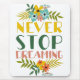 Never Stop Dreaming typography quote with top and bottom floral sprays
