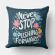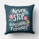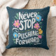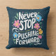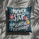 Never Stop Pushing Forward Floral Typography Throw Pillow