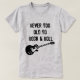Rock music is timeless whether you're young or old. This T-shirt features a classic guitar with worn out text. The message is simple; never let your age restrain you from the love of rock music.