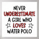 Never underestimate a girl who loves water polo. For the girl or lady who loves playing water polo - for adults, children & teenagers. Funny gift for Christmas, birthdays, Mother's day, for yourself, “just because"