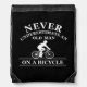 never underestimate an old man on a bicycle drawstring bag