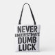 "Never Underestimate Dumb Luck" Saying Tote Bag