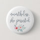 Let her speak! Our typography quote button features "nevertheless, she persisted" in slate blue handwritten style calligraphy script lettering adorned with a spray of pink and sage watercolor flowers. A perfect gift for the feminist, Elizabeth Warren supporter, or future female leader in your life!