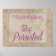 A phrase that has quickly become a rallying cry for the women's right movement, as well as current political civil rights movements in general. The strength to persist will continue to win the day, in time, over all obstacles. A perfect way to show your support... Nevertheless, She Persisted.