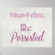 A phrase that has quickly become a rallying cry for the women's right movement, as well as current political civil rights movements in general. The strength to persist will continue to win the day, in time, over all obstacles. A perfect way to show your support... Nevertheless, She Persisted.