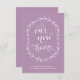 This purple "new home" announcement card features a rustic floral wreath and the phrase "Our new home" written in lovely calligraphy.