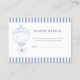 Celebrate your upcoming arrival with this charming diaper raffle enclosure card. Featuring a sweet blue hot air balloon graphic set against a classic blue and cream striped border, this card is perfect for a baby shower. The text invites guests to 'Ring a Pack of Diapers Any Size for a Chance to Win a Special Prize' and includes a space for the guest's name. This design adds a whimsical touch to your baby shower invitations, encouraging guests to participate in a fun tradition.