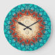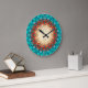 Gorgeous aqua blue and desert earth colours geometric shapes and designed custom printed wall clock with subliminal message of balance, Yin Yang symbol in centre - fully customizable space for you to personalize with text, if you desire.