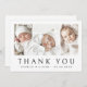 New baby thank you card featuring three photos and the baby's name and date of birth on the front. Custom message on the back. Change colors and fonts, move and resize elements in the design tool.
