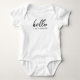 Welcome a little one with a special touch — this custom baby name bodysuit is the perfect way to celebrate a growing family. This personalized babygrow features the baby’s name and hello message printed in a clean, modern design. Ideal as a baby shower gift, a newborn announcement outfit, or a keepsake to treasure for years to come.