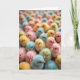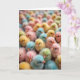 This design shows a tightly framed crowd of newly hatched chicks, their fluffy bodies filling the scene from edge to edge like a soft spring meadow in miniature. Seen from above and up close, the focus settles on a central cluster while the outer chicks fade into a gentle blur, creating a cozy, tucked-together look. Pastel shades of pink, aqua, sunny yellow, and light green mingle across the group, and the soft lighting makes their down look extra velvety. Several chicks lean toward one another as if sharing a quiet secret, and a few face each other with an affectionate, friendly gaze that suggests togetherness. Near the top center, a short greeting in pale lavender sits in a simple, rounded style, and a smaller line in light gray rests beneath it. The background is fully covered by the chicks, so there’s no empty space, just a layered texture of fluff and color, with a small 🌷 tucked near the lower right. Tiny orange beaks and glossy dark eyes peek out between the pastel feathers, with the sharpest detail on the middle pair and the rest softly fading outward.