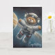 Teddy bear astronaut floating in outer space for new baby boy congratulations.