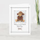A delicate minimalist new baby greetings card design of a crochet monkey.