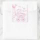 Announce "It's a Girl," with a pink baby buggy and balloons! These square stickers are great for the new arrival. Perfect for baby shower invitations, favors, annoucements, and more! Original artwork by Audrey Ascenzo.