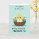 This card shows a bright yellow baby bird peeking out of a cracked eggshell, its rosy cheeks and one winking eye giving it a flirty, friendly charm 🐣. The eggshell is decorated with tiny flower and abstract shapes in red, blue, and white, adding small bursts of color around the bird. The little bird sits snugly in a brown woven basket, like it’s being gently looked after by someone close. On either side, leafy green sprigs and small blossoms in white, pink, and yellow lean inward, creating a cozy, together-at-the-center feeling 🌷. The background is a soft pastel blue, like a calm spring sky that keeps the scene light and airy. Curved lettering appears above the illustration in a darker tone, and a second line of matching text sits below the basket, neatly framing the image. The basket’s woven texture is shown with fine crosshatch lines, and the eggshell pieces have crisp edges with tiny patterned details.