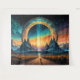 The Sun Rises Through a dimensional stargate/portal in the Mountains, Colorful landscape and sky.