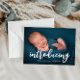 lettering script photo new born baby birth announcement card with baby girl theme, personalized photo card. The text and colours can be edited.