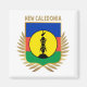 The flag of New Caledonia is infused into a faux gold shield shape and rests upon a faux gold wreath.
