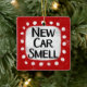 "New Car Smell" is a fun text design with a white accent shape surrounded by white whimsical textured dots.