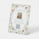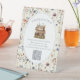 This floral pedestal sign is perfect for a 'New Chapter' baby shower. Have your guest contribute to a 'diaperfund' using your own donation page and a QR code. Featuring a watercolor stack of floral-decorated books and a soft wildflower background, they add a vintage storybook charm. The classic Old English-style font enhances the nostalgic feel, making them a beautiful addition to your celebration.