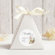 The sticker is made on wonderful paper and had no problem sticking to the bag that I purchased to put it on. I wanted to find a design that would be cute for the bride and groom and this one fit the bill as it has cute "bees" buzzing around and the wedding was taking place in a town called "Bee Cave". The packaging was great and protected the stickers. The website is easy to navigate and there are so many color choices. I had no problem finding a color that the bride was using on everything else selected. The design was adorable and there were many to choose from. You can make the figure as larger or smaller and you can place the photo and writting whereever you want to in the sticker. The printing is fabulous..better than expected.