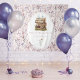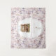 This large sweet floral backdrop tapestry is for a bridal shower event, with the theme 'New chapter'. The tapestry features illustrations of a watercolor stack of floral decorated books and the background is spring wildflowers in soft colors. Charming and whimsicle. Classic old english text style font for a feeling of old vintage books.