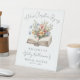 A charming welcome sign for a baby or bridal shower inspired by the “A New Chapter Begins” theme. Centered on the sign is a watercolor open vintage book with delicate wildflowers blooming from inside in soft blush pink, yellow, periwinkle blue, and subtle hints of orange-red, creating a warm and whimsical look.