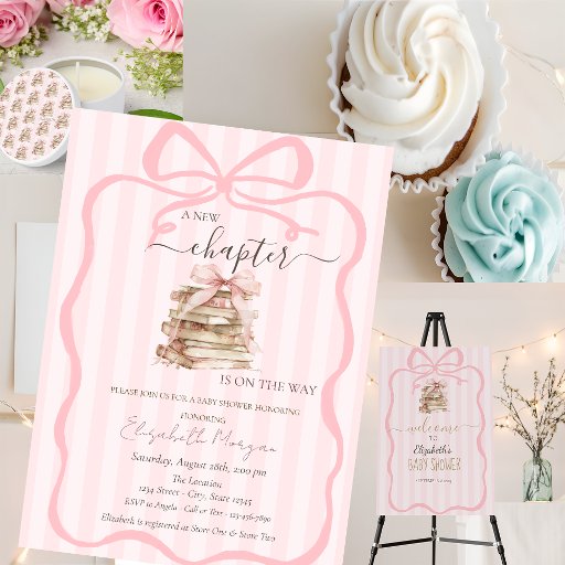 New Chapter Pink Bow Stripes Baby ShowerDesigned by Zorica Bozic-Blazic