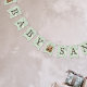 This sweet floral party bunting flags features an illustration in the background of spring wildflowers in soft colors. Centered is old books in a stack with sweet flowers. Part of a collection with the theme "A new chapter is about to be told". It the example the baby's last name is of seven letters. If you want to design it with shorter or longer names each flag has three layers inside the design tool. The background, the letter and the stack of books. Changing the order of the layars you can easily make each flag with or without letter or books.