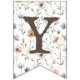 This sweet floral party bunting flags features an illustration in the background of spring wildflowers in soft colors. Centered is old books in a stack with sweet flowers. Part of a collection with the theme "A new chapter is about to be told". It the example the baby's last name is of seven letters. If you want to design it with shorter or longer names each flag has three layers inside the design tool. The background, the letter and the stack of books. Changing the order of the layars you can easily make each flag with or without letter or books.