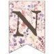 This sweet floral party bunting flags features an illustration in the background of spring wildflowers in soft colors. Centered is old books in a stack with sweet flowers. Part of a collection with the theme "A new chapter is about to be told". It the example the baby's last name is of seven letters. If you want to design it with shorter or longer names each flag has three layers inside the design tool. The background, the letter and the stack of books. Changing the order of the layars you can easily make each flag with or without letter or books.