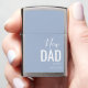 New Dad Of Baby Boy Blue Custom Zippo Lighter is designed with a pastel sky blue matte background and "new dad" in white calligraphy and bold block lettering on the right lower front. Click personalize template option and enter Dad's name and year. This makes a great customized gift for a Dad with a new baby boy.