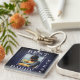 Best daddy ever Happy First Father's Day bold white typography on dark navy blue rustic chalkboard new dad personalized double sided keychain with your photo, text, and signature.