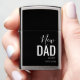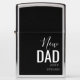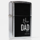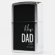 New Dad Script Personalized Keepsake Zippo Lighter is designed with a bold black matte background and "new dad" in white calligraphy and bold block lettering on the right lower front. Click personalize template option and enter Dad's name and year. This makes a great customized gift for a Dad with a new baby boy or girl.