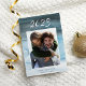 Elegant New Year photo cards feature your favorite photo framed by a watercolor wash background in rich ocean blue. The year appears at the top in calligraphy lettering, with your custom greeting and names beneath.
