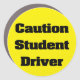 Bright easy to read yellow and black modern Caution Student Driver sign. Perfect for letting other drivers that your son or daughter is learning to drive and to give them some latitude.