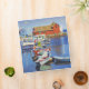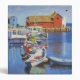Vintage harbor on the New England coast with fishing boats at rest. This scene features the most often painted and photographed building in the USA sitting on scenic Bradley Wharf in Rockport, Massachusetts. Designed from an original impressionistic oil painting by fine art painter Daniel Fishback.