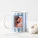 Hello Grandma Grandpa coffee mug -- welcomes the newborn and with important data -- his name and date of birth -- along with two photos. Talk about a keepsake! Yes, easily change to Hello Mom or Dad -- the baby boy has arrived. And, there is, of course, one in pink for the baby girl.