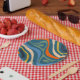 New Groove Multicolor Retro Swirl Abstract Pattern Paper Plates