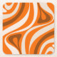 New Groove Retro Abstract Patterns Orange Brown Square Paper Coaster