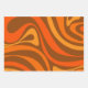 New Groove Trippy Retro 70s Orange Brown Abstract Wrapping Paper Sheets