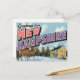 Discover the charm of the Granite State with this nostalgic "Greetings from New Hampshire" postcard. This vintage large-letter design features a serene winter scene with majestic deer (bucks), pine trees, and a classic New England yellow farmhouse. It perfectly captures the rustic beauty and wildlife of New Hampshire. Ideal for residents, visitors, winter sports fans, animal lovers, souvenir collectors, and anyone who enjoys US state travel art and classic Americana. Send a unique note or display this piece of retro nostalgia.