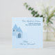 The design features artwork of a blue home along with customizable typography fields detailing a moving to a new home announcement and a housewarming party invitation.