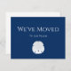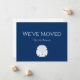 Nautical We've Moved Beach Navy Blue Moving announcement card. With a simple typography and sand dollar design, black and white lettering can be personalized with your information. Great for letting loved ones know about your new home.