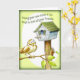 Watercolor and pen and ink. Cute cartoon illustration sending warm wishes for a milestone event, the purchase of a new, or first home!