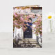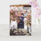 A delightful New Home card with pretty pink cherry blossom outside the front door of a rather old city home. On a bright spring day, the sunshine sets dabbled shadows dancing on the stone steps.